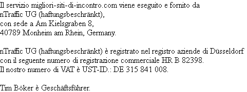 Le informazioni contenute in questo sito sono di natura generale e informativa. I contenuti di queste pagine sono controllati con attenzione. Per la precisione, la completezza e la tempestività dei contenuti, nessuna responsabilità può essere accettata. Il rispettivo autore è responsabile per il contenuto dei profili, incluse le Immagini.